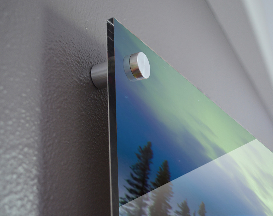 Printed to the edge - Ready to hang - provided with 4 premium polished aluminum stand off ( wall screws and mounting hardware provided )