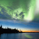 Amidst the tranquil setting of Prelude Lake, the waning sun ignites the sky after a warm fall day, while the auroras burst forth in a vibrant, electri...[+]